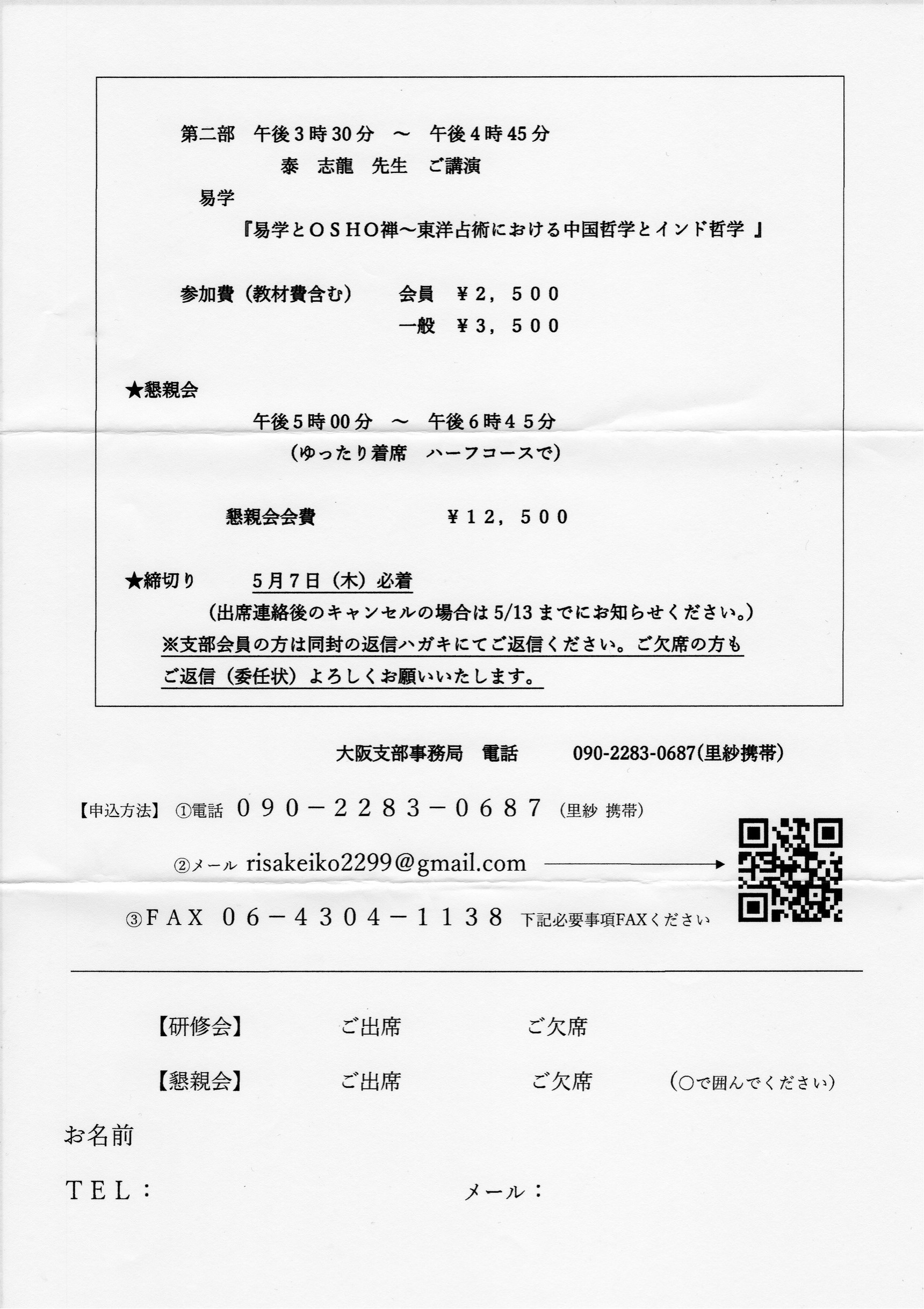 ☆研修会:午後1時50分より受付開始